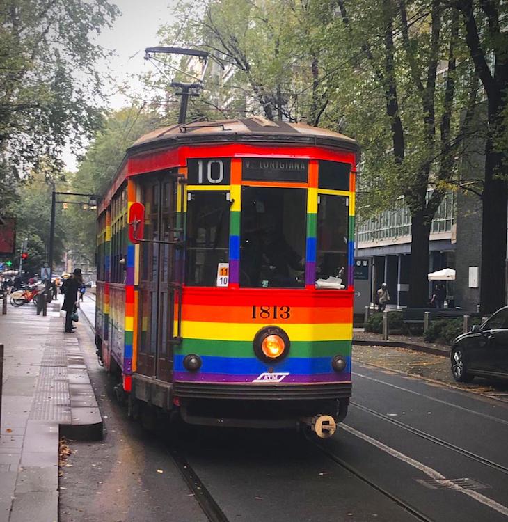 Un tram dipinto arcobaleno, e color arcobaleno anche calzettoni, uno zerbino, bandiere alle finestre, sui balconi, davanti ai pulpiti, sugli ombrelli e sugli ombrelloni, verniciati sul manto della strada, ornamento di un cappotto, festoni appesi alle case sulle strade, ma anche su mutande stese ad asciugare, sulla parete di una libreria, sulle grate, sulle cartoline… sono decine di fotografie dedicate alla bandiera “dei sette colori” che formano la mostra Dettagli di pace inaugurata venerdì 16 maggio in sala Claudiana a Milano, dove resterà aperta per un mese, dando la possibilità di acquistare fotografie e cartoline. La mostra sarà esposta fino al 15 giugno, da martedì a sabato 9-13 e 15-19.
