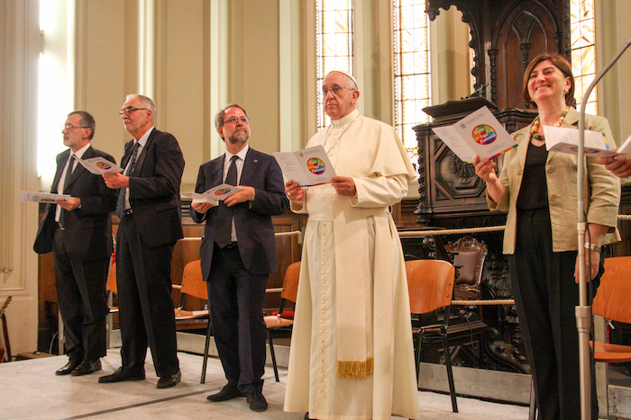 Foto di Pietro Romeo, il papa nel tempio valdese di Torino, giugno 2015